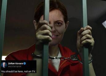 (Adnkronos) – “Dovresti essere qui, non in tv”. Lo scrive su X Zoltan Kovacs, portavoce del premier ungherese Viktor Orban, pubblicando un fotomontaggio in cui si vede Ilaria Salis ammanettata e in cella.