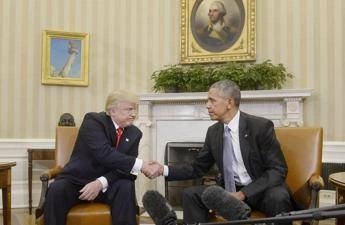 “Io contro Barack Obama? Sarebbe fantastico”. Donald Trump può davvero rimanere presidente degli Stati Uniti con il terzo mandato? Il 78enne leader periodicamente accenna all’ipotesi. Nello Studio Ovale, il presidente sfrutta l’assist di un cronista. Se la terza candidatura venisse in qualche modo autorizzata, i democratici potrebbero riproporre Barack Obama, già due volte presidente. “Mi piacerebbe, sarebbe ottimo”, dice Trump, che ripropone per il resto la linea consueta: prudenza, senza escludere categoricamente l’ipotesi. “La gente mi chiede di candidarmi, dicono ci sia un modo per farlo, non lo so. Ho quasi 4 anni davanti a me, abbiamo fatto un ottimo lavoro nei primi 100 giorni. Faremo presto grandi annunci, è davvero la rinascita di un paese”, dice.
