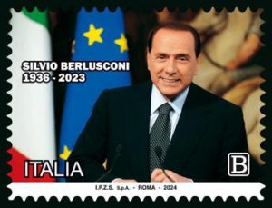 Berlusconi, un francobollo in ricordo del Cav: ritratto tra bandiere Italia e Ue