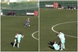 Corre verso compagno e lo butta a terra con una spallata: clamorosa lite in amichevole